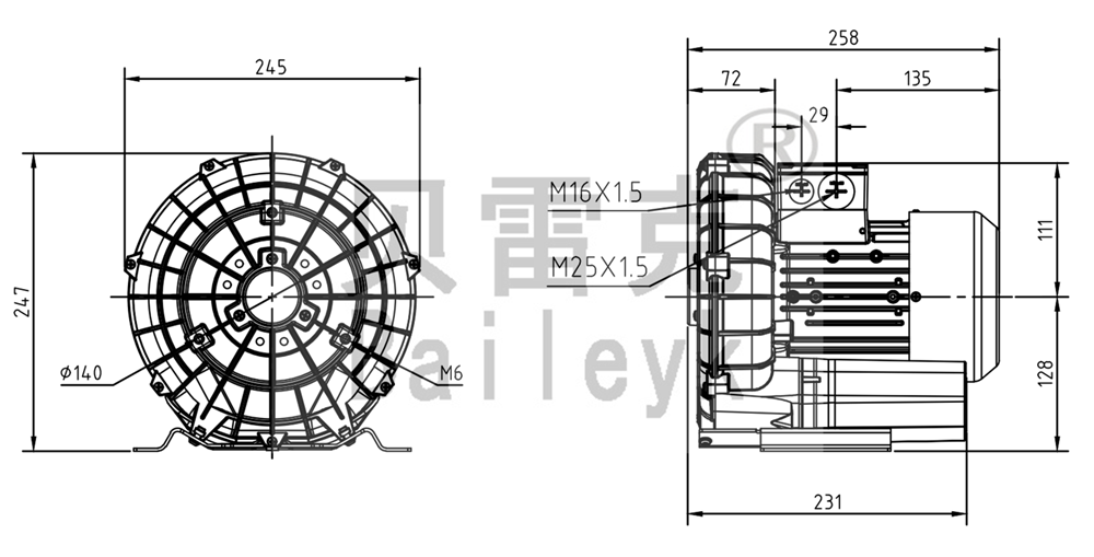 最大風(fēng)量:80m3/h 最大正壓:130mbar 最大負(fù)壓:120mbar 防護(hù)等級:IP55 噪音:53db 重量:10Kg