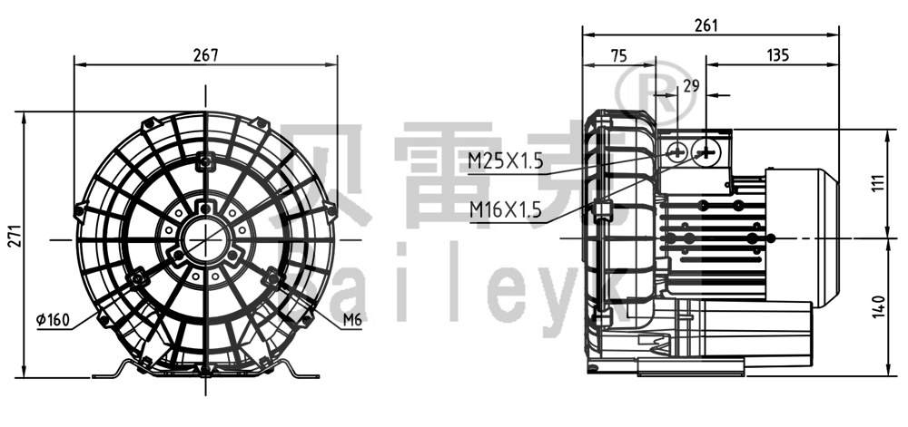 最大風(fēng)量:100m3/h 最大正壓:150mbar 最大負(fù)壓:150mbar 防護等級:IP55 噪音:55db 重量:12Kg