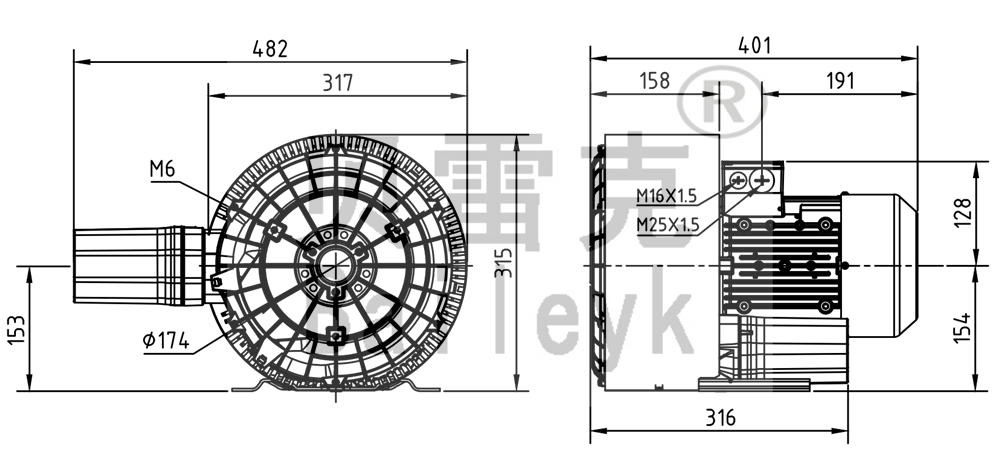 最大風(fēng)量:150m3/h 最大正壓:280mbar 最大負(fù)壓:280mbar 防護(hù)等級(jí):IP55 噪音:66db 重量:25Kg
