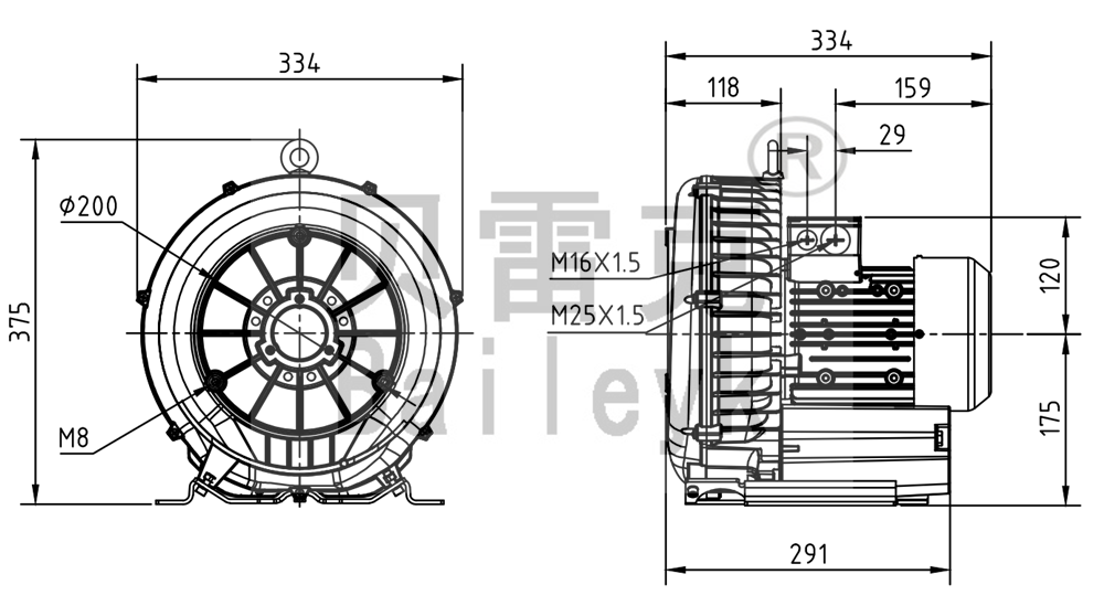 最大風(fēng)量:270m3/h 最大正壓:110mbar 最大負(fù)壓:120mbar 防護(hù)等級(jí):IP55 噪音:65db 重量:23Kg