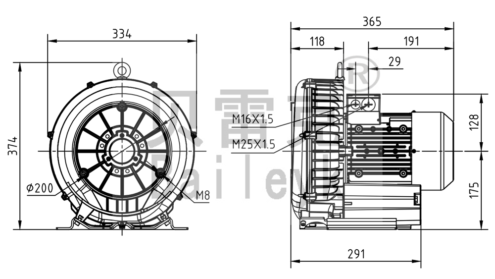 最大風(fēng)量:270m3/h 最大正壓:230mbar 最大負(fù)壓:220mbar 防護(hù)等級(jí):IP55 噪音:65db 重量:26Kg